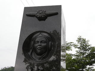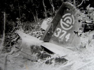 | ●墜落直後の写真、尾翼のハマヒは(浜松飛行隊) | ●道標レリーフモデルの越智少尉 | ||||||||||||||||||||||||||||||||||||||||||||||||||||||||||||||||||