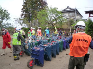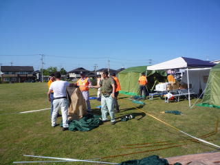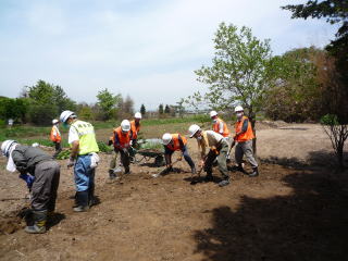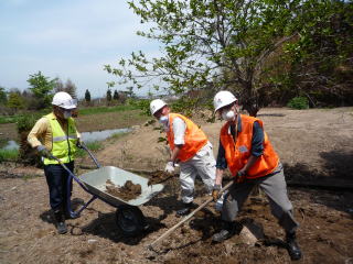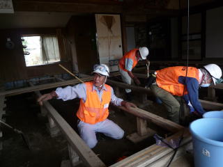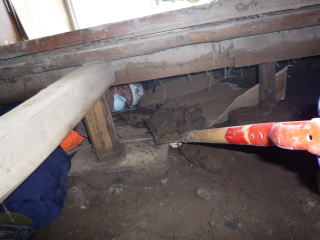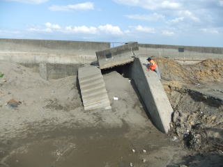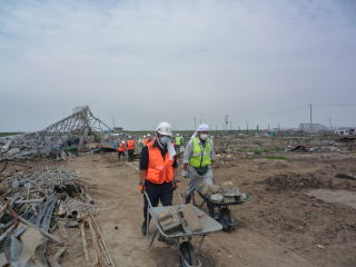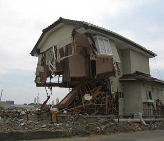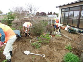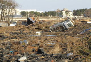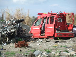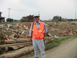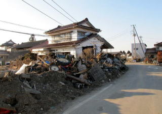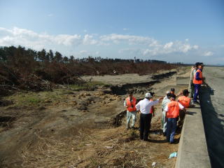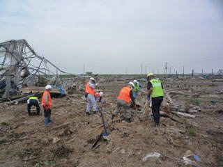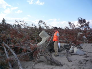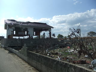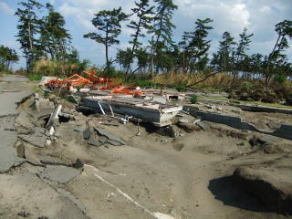 ●ガレキの状況と立ち枯れの進む樹木(遠景)