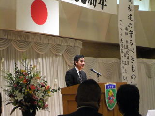 | ●記念講演会場 | ●佐藤正久参議院議員(ヒゲの隊長)紹介 | ●演題「私達の守るべきもの」 |