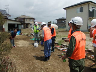 ●ガレキの状況と立ち枯れの進む樹木(遠景)