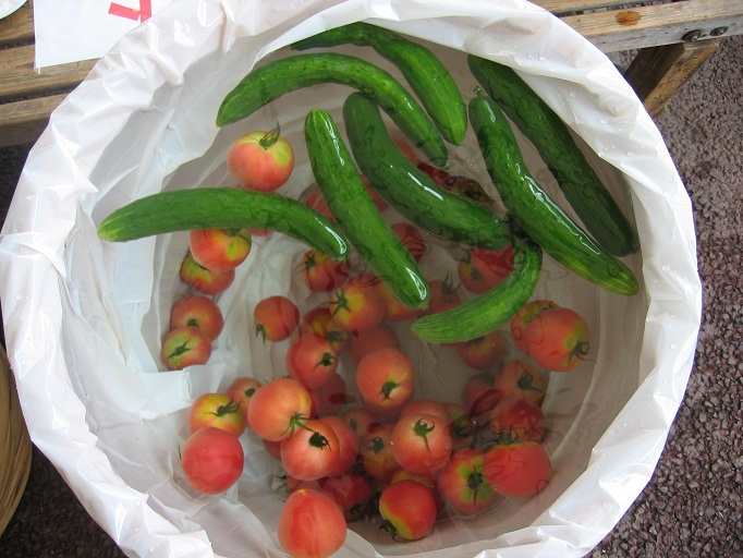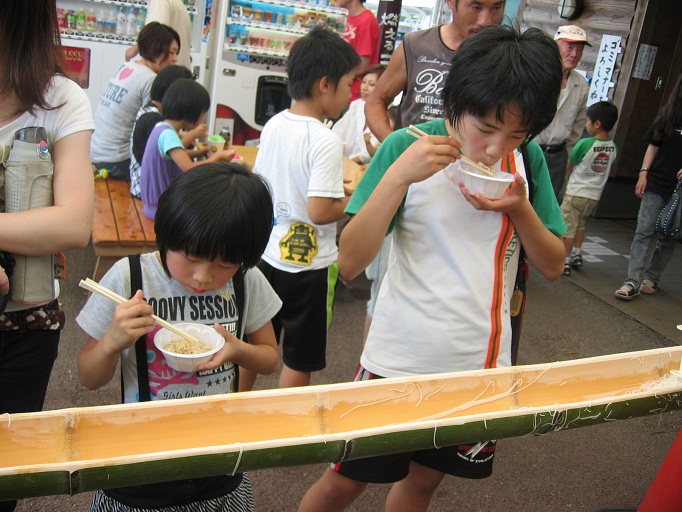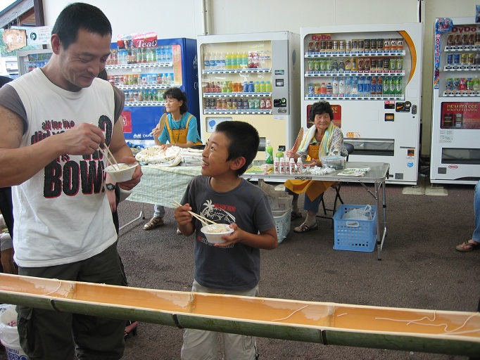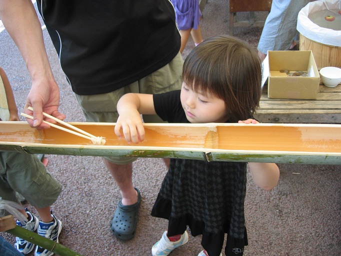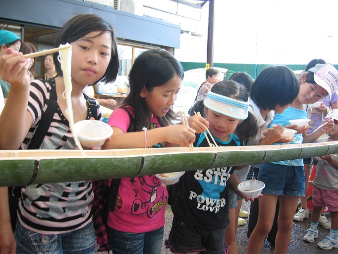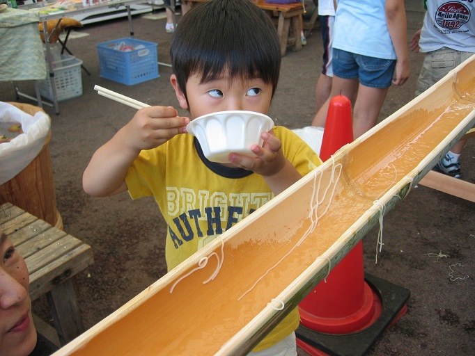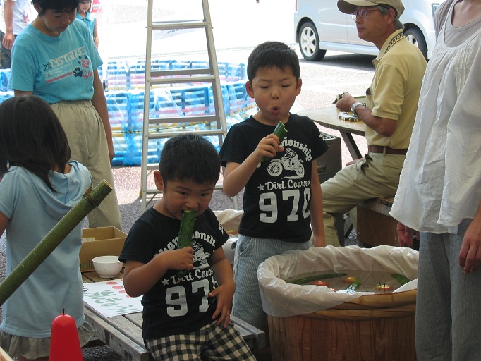 雨あがりの初夏の一日。恒例の流しそうめんに、じゃがいも詰め放題、冷やし野菜まるかじり、などで楽しい時間を過ごしました。
