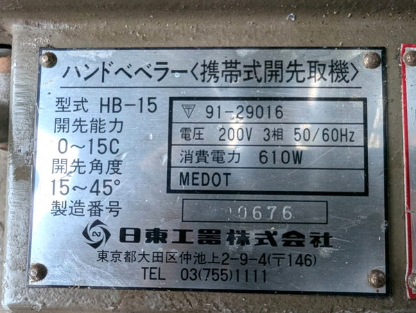 能力0〜15C, 角度15〜45°三相200V, 重量15kg※カタログ値