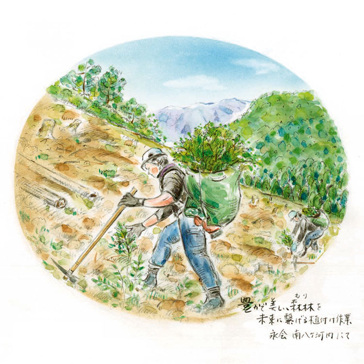 「大紀森林組合だより」毎号の表紙を飾るイラストは、中谷よう子さんに当誌のために書き下ろしていただいてるオリジナル作品です。優しさと温かさに満ちた、郷土愛溢れる作品をご鑑賞ください。
